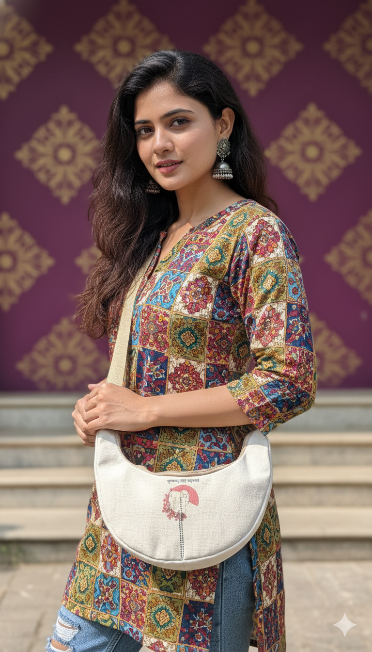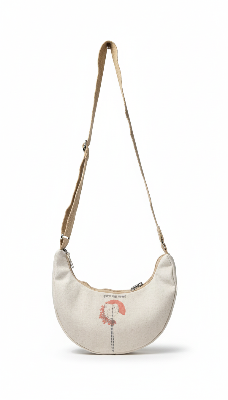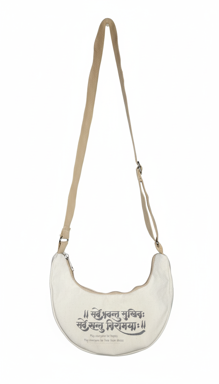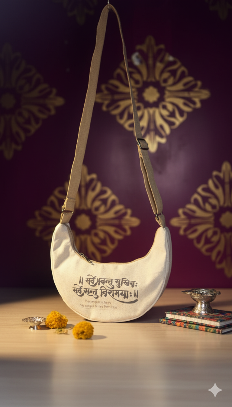 This eco-chic half-moon canvas bag is your perfect everyday companion — where simplicity meets spiritual serenity.